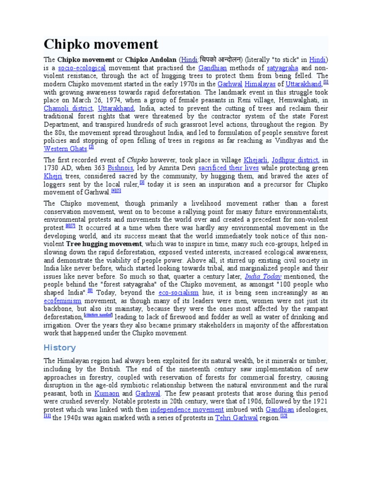 It inspire many eco-groups by helping slow down rapid deforestation. Download This PDF. Click Here Chipko Movement.